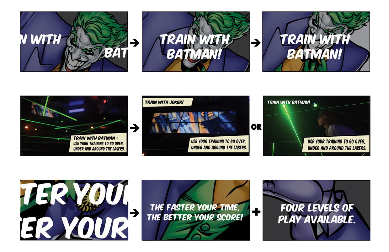 Silent queue line instruction videos created for Nickelodeon Hotel and Circus Circus Las Vegas to help participants understand how to play, as they are in queue for the themed laser maze. One of the mazes is a Teenage Mutant Ninja Turtle experience, while the second is Batman themed. I worked closely with both brands, Nickelodeon and Warner Bros, to ensure the assets are properly showcased.