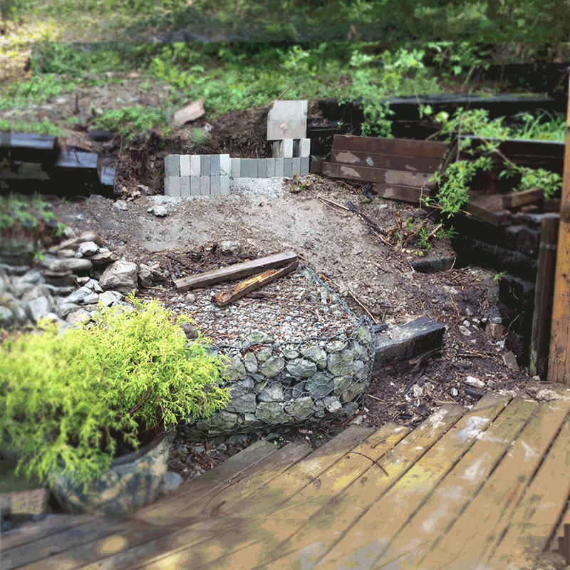 My husband and I decided to use the natural slope of our parents' backyard to beautify an area by their outdoor patio. They had a direction on the multi-step look of the waterfall and stone section. It took plenty of research, planning and experimentation to create this two-pump system.