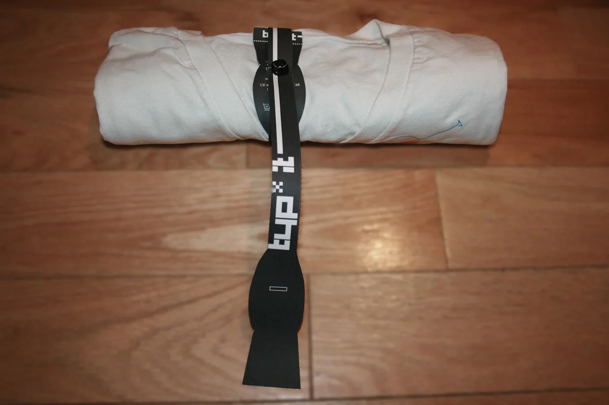 Item to be Rolled and Tag to be Buttoned and Used as Handle