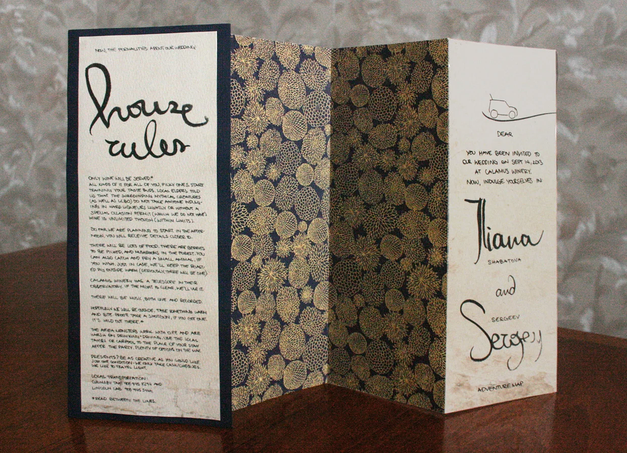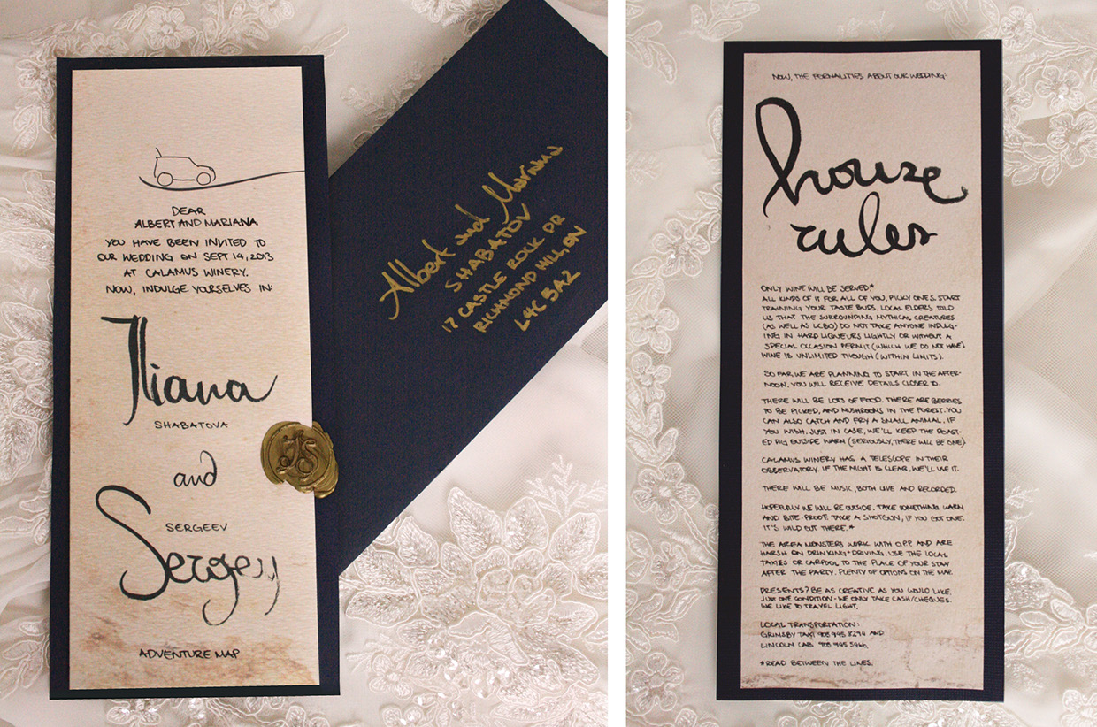 Hand-crafted Vintage Invitation (front, envelope and back)